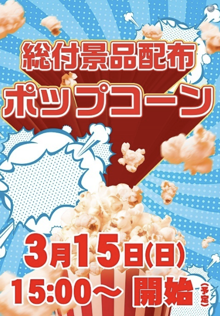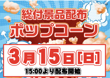 3月15日(日)総付景品 ポップコーン【ダイナム宮崎日向財光寺店 ゆったり館】 └オリジナル景品 3月15日(日)総付景品 ポップコーン【ダイナム宮崎日向財光寺店 ゆったり館】 └オリジナル景品 2026.03.15 ダイナム宮崎日向財光寺店 ゆったり館 宮崎県日向市大字財光寺1831番地1 詳しく見る