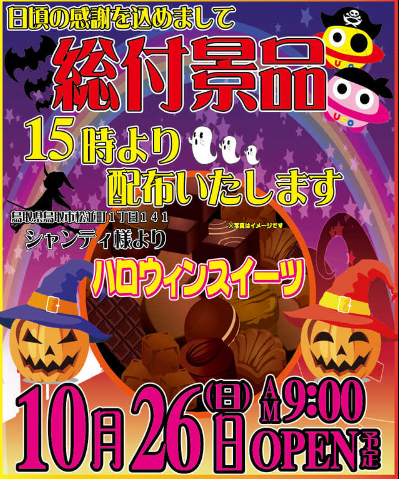 10月26日(日)ハロウィンスイーツ【UFO安長】 └オリジナル景品 10月26日(日)ハロウィンスイーツ【UFO安長】 └オリジナル景品 2025.10.26 UFO安長 鳥取県鳥取市安長107-2 詳しく見る
