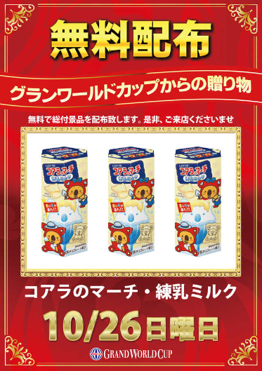 10月26日(日)コアラのマーチ 練乳ミルク【グランワールドカップ米子店】 └オリジナル景品 10月26日(日)コアラのマーチ 練乳ミルク【グランワールドカップ米子店】 └オリジナル景品 2025.10.26 グランワールドカップ米子店 鳥取県米子市熊党331-12 詳しく見る