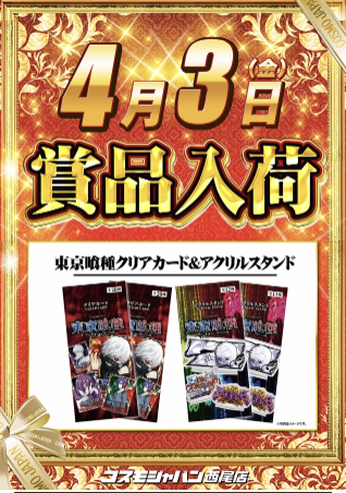 4月3日(金)東京喰種クリアカード&アクリルスタンド【コスモジャパン西尾店】 └オリジナル景品 4月3日(金)東京喰種クリアカード&アクリルスタンド【コスモジャパン西尾店】 └オリジナル景品 2026.04.03 コスモジャパン西尾店 愛知県西尾市平坂町上縄130-1 詳しく見る