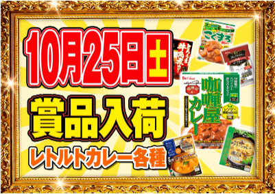 10月25日(土)レトルトカレー各種【ラッキー1番上飯田店】 └オリジナル景品 10月25日(土)レトルトカレー各種【ラッキー1番上飯田店】 └オリジナル景品 2025.10.25 ラッキー1番上飯田店 愛知県名古屋市北区御成通3-9-1 詳しく見る