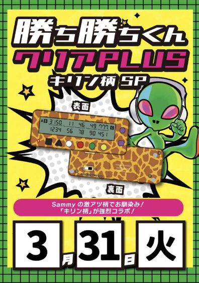 3月31日(火)勝ち勝ちくん クリアPLUS キリン柄SP【ZENT岡崎インター店】 └オリジナル景品 3月31日(火)勝ち勝ちくん クリアPLUS キリン柄SP【ZENT岡崎インター店】 └オリジナル景品 2026.03.31 ZENT岡崎インター店 愛知県岡崎市大平町字堤上1 詳しく見る