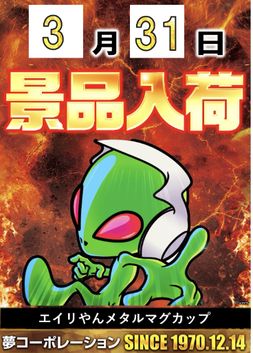 3月31日(火)エイリやんメタルマグカップ【夢屋高富505店】 └オリジナル景品 3月31日(火)エイリやんメタルマグカップ【夢屋高富505店】 └オリジナル景品 2026.03.31 夢屋高富505店 岐阜県山県市高富米野2335 詳しく見る