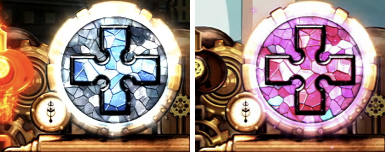 アイコン点灯パターンで十字目高確を示唆。青やピンクに点灯すれば「十字目変換」発生のチャンス!