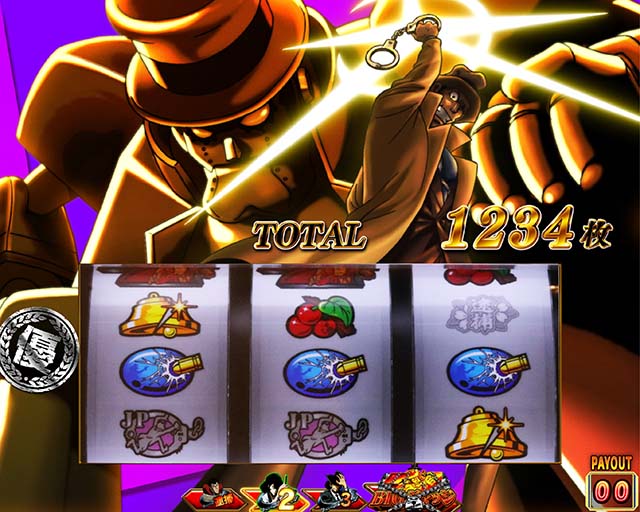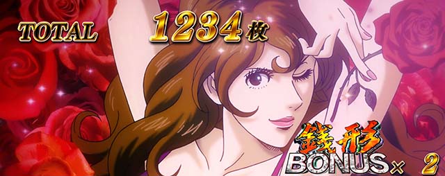 ステージチェンジ時に出現するアイキャッチの種類で滞在モードを判別。銭形(赤)や不二子(金)が出現すれば早い初当りに期待できる。