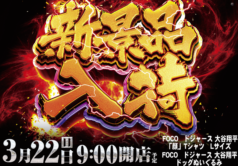 3月22日(日)FOCO ドジャース 大谷翔平 顔Tシャツ Lサイズ・ドッグぬいぐるみ【ダイナム富山高岡波岡店 ゆったり館】 └オリジナル景品 2026.03.22 ダイナム富山高岡波岡店 ゆったり館 富山県高岡市波岡323番地1 詳しく見る 高岡市