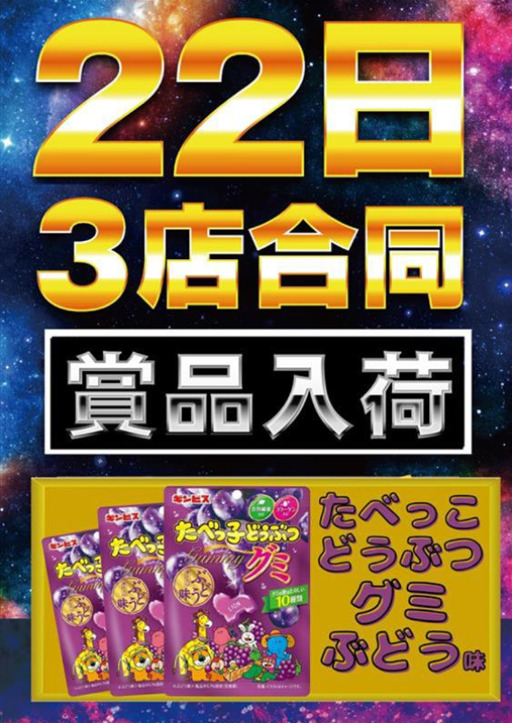 10月22日(水)たべっこどうぶつグミぶどう味【ニューアサヒ箕輪店】 └オリジナル景品 2025.10.22 ニューアサヒ箕輪店 長野県上伊那郡箕輪町大字三日町字曽根田883-1 詳しく見る 上伊那郡箕輪町