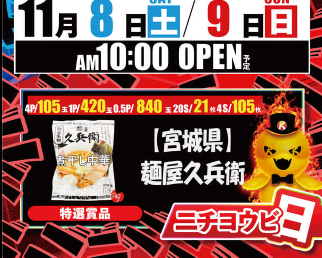 11月9日(日)黄金のフィナンシェ・醤油・上白糖【ダイナム山口長門店 ゆったり館】 └オリジナル景品 2025.11.09 ダイナム山口長門店 ゆったり館 山口県長門市仙崎字網田343番地2 詳しく見る 長門市