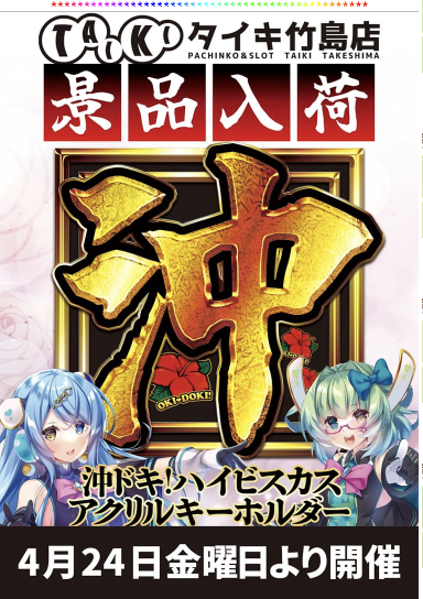 4月24日(金)沖ドキ!ハイビスカスアクリルキーホルダー【チャンピオンタイキ竹島店】 └オリジナル景品 2026.04.24 チャンピオンタイキ竹島店 愛知県蒲郡市八百富町13-17 詳しく見る 蒲郡市