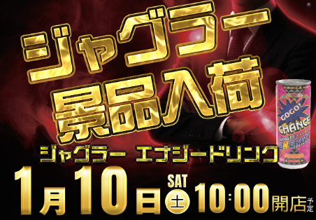 1月10日(土)ジャグラー エナジードリンク【ダイナム和歌山岩出店 ゆったり館】 └オリジナル景品 2026.01.10 ダイナム和歌山岩出店 ゆったり館 和歌山県岩出市中島756番地2 詳しく見る 岩出市