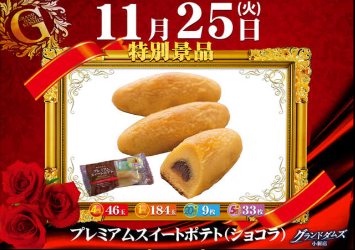 11月25日(火)プレミアムスイートポテト ショコラ【GRAND DAMZ小新店】 └オリジナル景品 2025.11.25 GRAND DAMZ小新店 新潟県新潟市西区小新南2-8-53 詳しく見る 新潟市西区