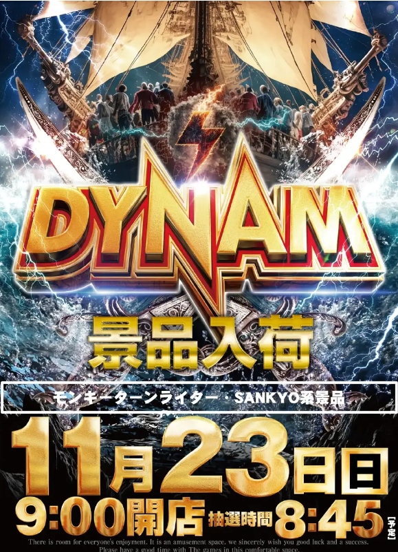 11月23日(日)モンキーターンライター・SANKYO 系景品【ダイナム入善店】 └オリジナル景品 2025.11.23 ダイナム入善店 富山県下新川郡入善町上飯野1197番地2 詳しく見る 下新川郡入善町