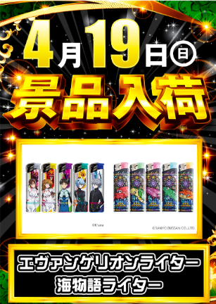 4月19日(日)エヴァンゲリオンライター・海物語ライター【ダイナム三重松阪三雲店 ゆったり館】 └オリジナル景品 2026.04.19 ダイナム三重松阪三雲店 ゆったり館 三重県松阪市市場庄町字眞菰1223番地1 詳しく見る 松阪市