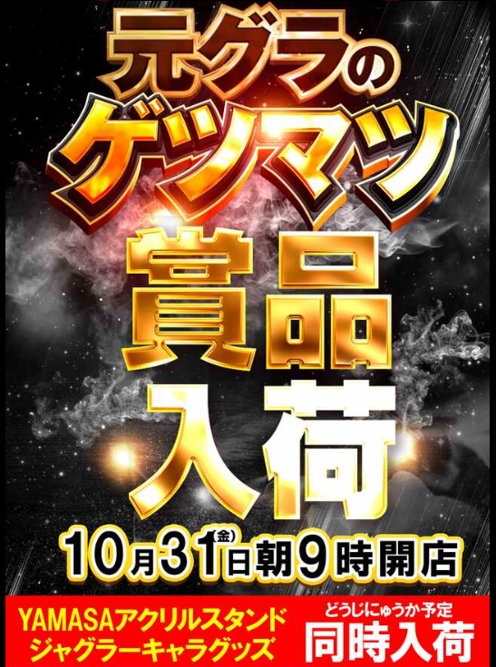 10月31日(金)YAMASAアクリルスタンド・ジャグラーキャラグッズ【パーラーグランド元山】 └オリジナル景品 2025.10.31 パーラーグランド元山 香川県高松市元山町586-1 詳しく見る 高松市
