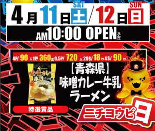 4月11日(土)・12日(日)マネケン クッキー&クリームワッフル【SUPER COSMO PREMIUM 柏原店】 └オリジナル景品 2026.04.12 SUPER COSMO PREMIUM 柏原店 大阪府柏原市片山町15-22 詳しく見る 柏原市