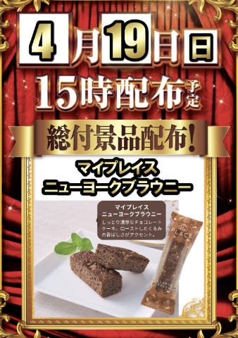 4月19日(日)ご来店プレゼント シャトレーゼ梨恵夢【ダイナム大阪貝塚店 ゆったり館】 └オリジナル景品 2026.04.19 ダイナム大阪貝塚店 ゆったり館 大阪府貝塚市澤931番地2 詳しく見る 貝塚市