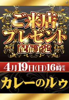 4月19日(日)ご来店プレゼント カレーのルゥ【ダイナム静岡掛川店 ゆったり館】 └オリジナル景品 2026.04.19 ダイナム静岡掛川店 ゆったり館 静岡県掛川市成滝字南大門288番地1 詳しく見る 掛川市