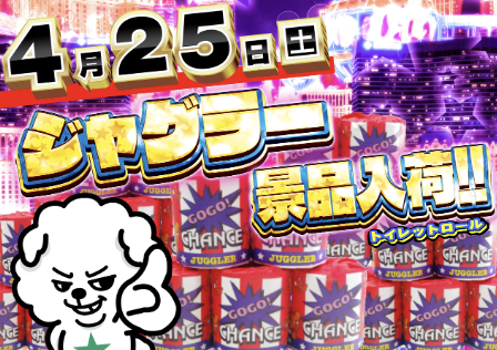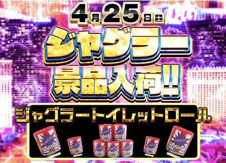 4月25日(土)ジャグラー景品【ダイナム静岡新居店 ゆったり館】 └オリジナル景品 2026.04.25 ダイナム静岡新居店 ゆったり館 静岡県湖西市新居町中之郷字菅ケ谷2868番地2 詳しく見る 湖西市