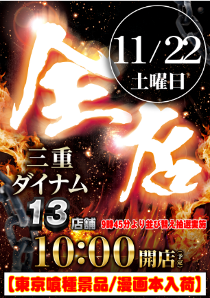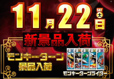11月22日(土)モンキーターンライター【ダイナム岐阜多治見店 ゆったり館】 └オリジナル景品 2025.11.22 ダイナム岐阜多治見店 ゆったり館 岐阜県多治見市笠原町字森下1647番地35 詳しく見る 多治見市