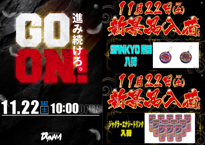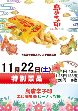 11月22日(土)SANKYO景品・ジャグラーエナジードリンク【ダイナム兵庫篠山店】 └オリジナル景品 2025.11.22 ダイナム兵庫篠山店 兵庫県丹波篠山市宇土字一丁突田ノ坪406番地 詳しく見る 丹波篠山市