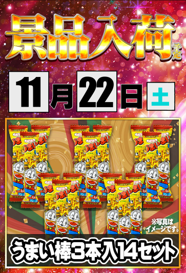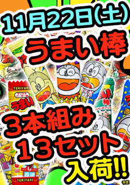 11月22日(土)うまい棒3本組み13セット【ラッキープラザ1050可児店】 └オリジナル景品 2025.11.22 ラッキープラザ1050可児店 岐阜県可児市川合字上巾2620-2 詳しく見る 可児市