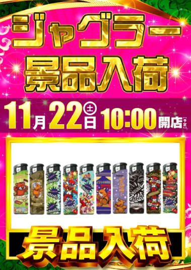 11月22日(土)ジャグラー景品【ダイナム石川金沢近岡店 ゆったり館】 └オリジナル景品 2025.11.22 ダイナム石川金沢近岡店 ゆったり館 石川県金沢市近岡町908番地1(大阪屋ショップ近岡店さん隣り) 詳しく見る 金沢市