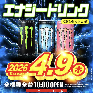 4月9日(木)エナジードリンク【エンターテイメントオメガ上賀茂】 └オリジナル景品 2026.04.09 エンターテイメントオメガ上賀茂 京都府京都市北区上賀茂朝露ヶ原町28-5 詳しく見る 京都市北区