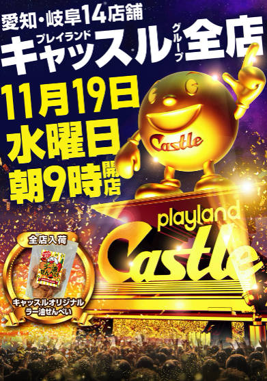 11月19日(水)キャッスルオリジナルラー油せんべい【プレイランドキャッスル熱田店】 └オリジナル景品 2025.11.19 プレイランドキャッスル熱田店 愛知県名古屋市熱田区六野1-3-18 詳しく見る 名古屋市熱田区