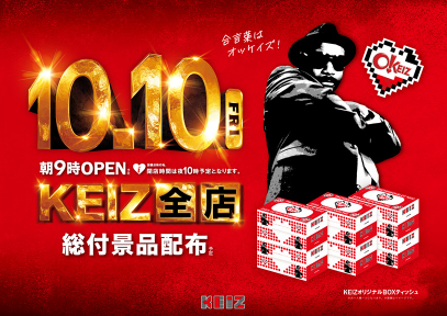 10月10日(金)KEIZオリジナルBOXティッシュ【KEIZギャラリエアピタ知立店】 └オリジナル景品 2025.10.10 KEIZギャラリエアピタ知立店 愛知県知立市長篠町大山18-1 詳しく見る 知立市