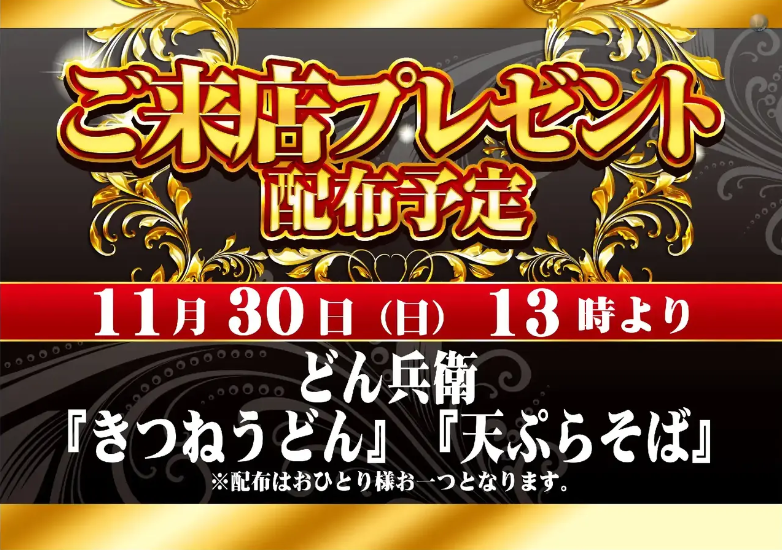 11月30日(日)どん兵衛 きつねうどん・天ぷらそば【ダイナム石川金沢専光寺店 ゆったり館】 └オリジナル景品 2025.11.30 ダイナム石川金沢専光寺店 ゆったり館 石川県金沢市専光寺町ヲ113番地1 詳しく見る 金沢市