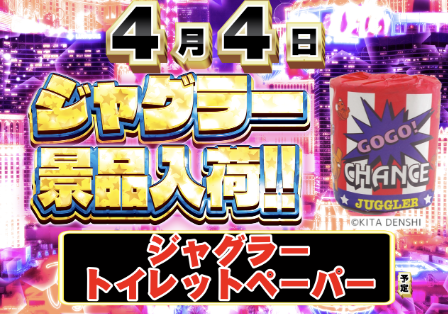 4月4日(土)ジャグラートイレットペーパー【ダイナム福岡田川店 ゆったり館】 └オリジナル景品 2026.04.04 ダイナム福岡田川店 ゆったり館 福岡県田川市大字伊田4237番地1 詳しく見る 田川市
