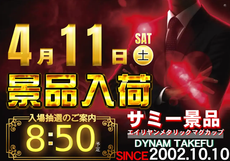 4月11日(土)有名コラボ菓子企画【ダイナム岐阜多治見店 ゆったり館】 └オリジナル景品 2026.04.11 ダイナム岐阜多治見店 ゆったり館 岐阜県多治見市笠原町字森下1647番地35 詳しく見る 多治見市