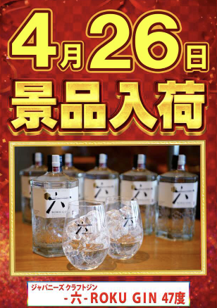 4月26日(日)ジャパニーズクラフトジン -六- ROKU GIN 47度【LPT春田店】 └オリジナル景品 2026.04.26 LPT春田店 愛知県名古屋市中川区春田3-194 詳しく見る 名古屋市中川区