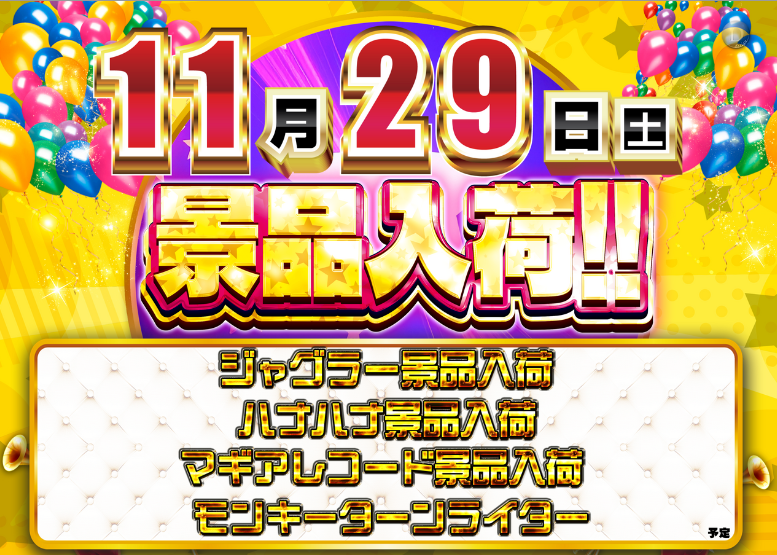 11月29日(土)ジャグラー景品・ハナハナ景品・マギアレコード景品・モンキーターンライター【ダイナム五泉店】 └オリジナル景品 2025.11.29 ダイナム五泉店 新潟県五泉市太田字柳仲971番地1 詳しく見る 五泉市
