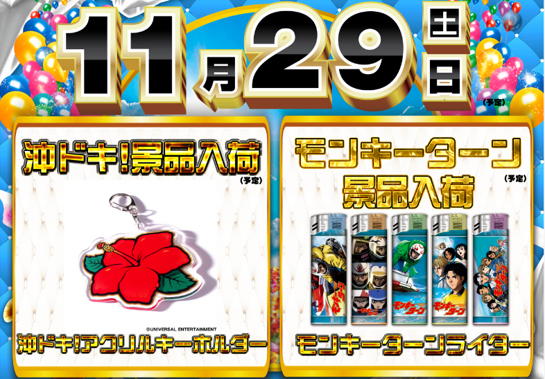 11月29日(土)沖ドキ!アクリルキーホルダー・モンキーターンライター【ダイナム香川東かがわ店 ゆったり館】 └オリジナル景品 2025.11.29 ダイナム香川東かがわ店 ゆったり館 香川県東かがわ市川東881番地 詳しく見る 東かがわ市