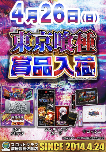 4月26日(日)東京喰種・カバネリ景品【ダイナム福岡柳川店 ゆったり館】 └オリジナル景品 2026.04.26 ダイナム福岡柳川店 ゆったり館 福岡県柳川市三橋町蒲船津字三ツ橋104番地1 詳しく見る 柳川市