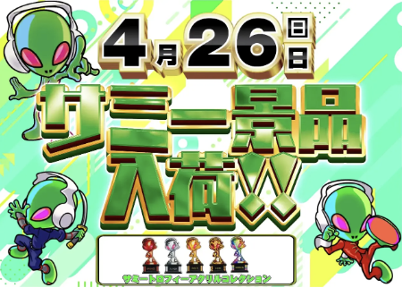 4月26日(日)サミー エイリやんアクスタ【ダイナム岐阜各務原鵜沼店 ゆったり館】 └オリジナル景品 2026.04.26 ダイナム岐阜各務原鵜沼店 ゆったり館 岐阜県各務原市鵜沼羽場町五丁目170番地 詳しく見る 各務原市