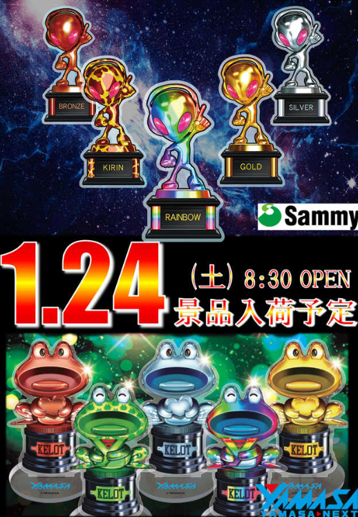 1月24日(土)Sammy・YAMASA景品【ジャムフレンドクラブエース三沢】 └オリジナル景品 2026.01.24 ジャムフレンドクラブエース三沢 青森県三沢市松原町2-31-204 詳しく見る 三沢市