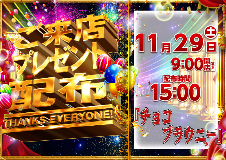 11月29日(土)チョコブラウニー【ダイナム山口宇部港町店 ゆったり館】 └オリジナル景品 2025.11.29 ダイナム山口宇部港町店 ゆったり館 山口県宇部市港町二丁目3番38号 詳しく見る 宇部市